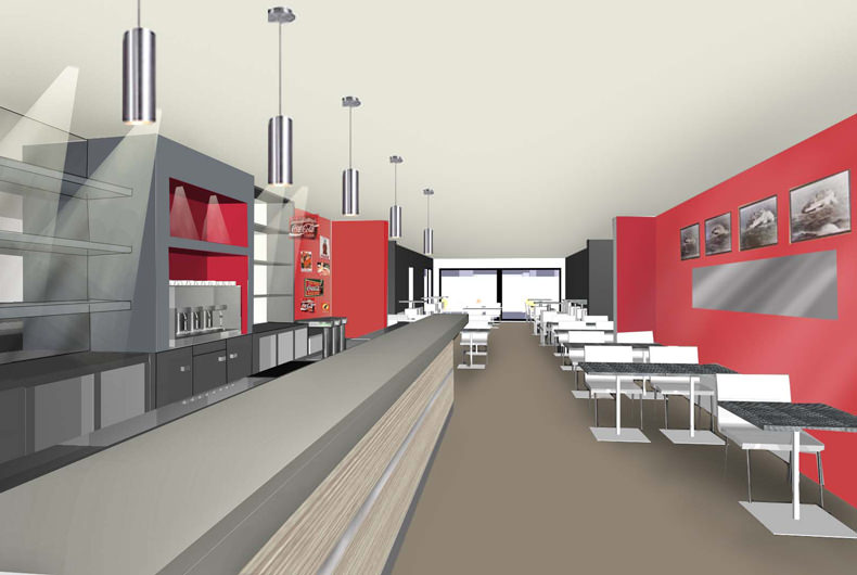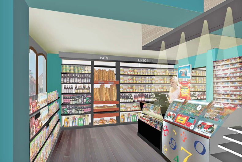 Les différents espaces en enfilade ont été ouverts les uns sur les autres pour plus de fluidité de circulation pour la clientèle et plus de visibilité pour les commerçants.