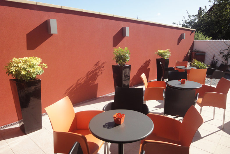 Nous avons conçu une nouvelle décoration plus actuelle et lumineuse en amenant des touches de couleurs franches et du mobilier contemporain.