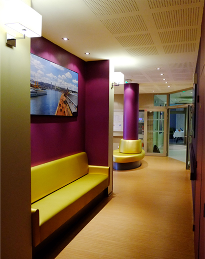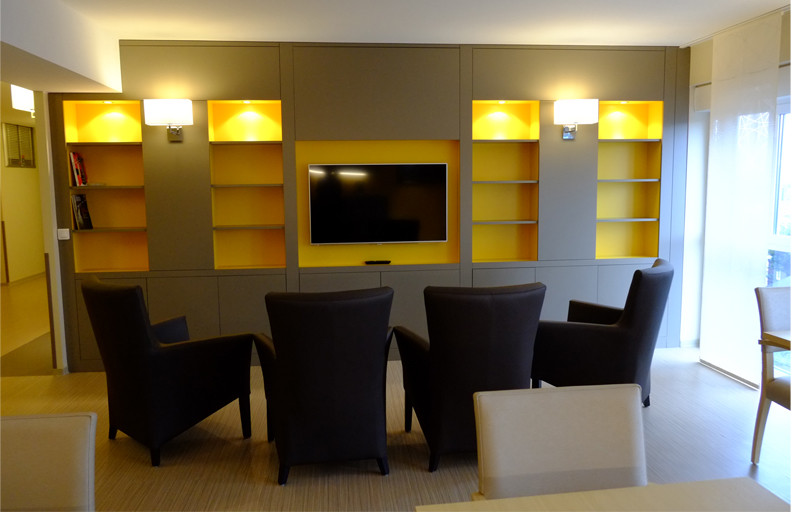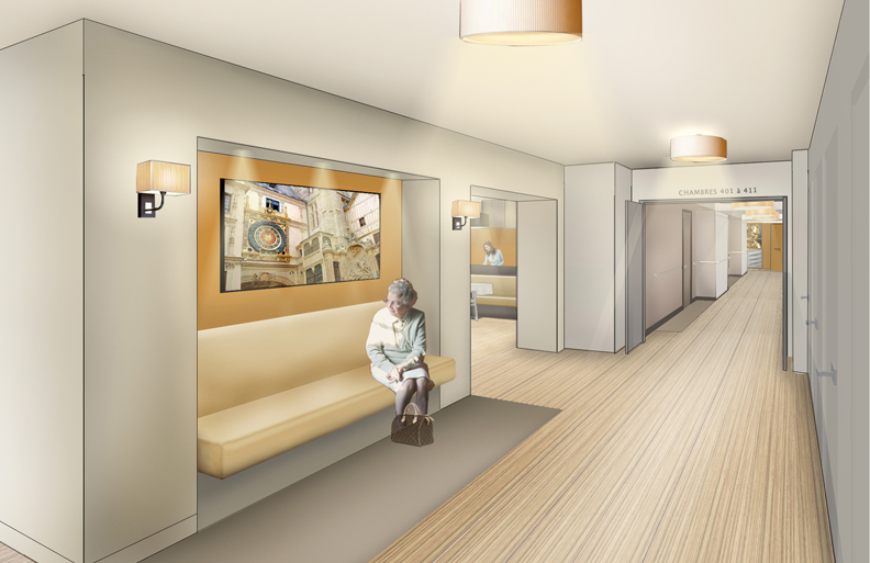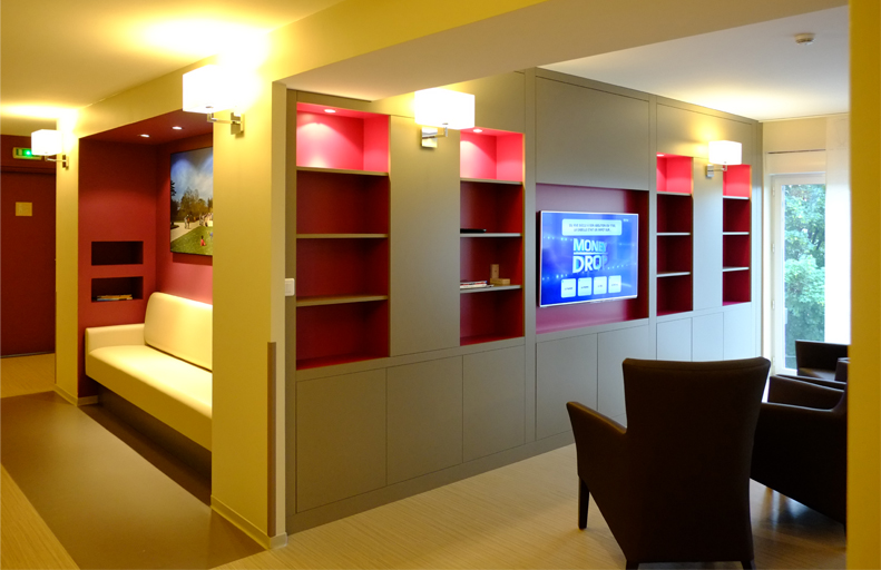 Nous avons également conçu la décoration de l’ensemble des chambres, circulations, espaces de vie et d’activités dans un esprit chaleureux et convivial.