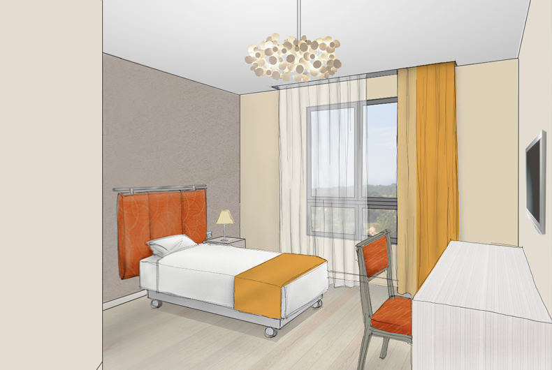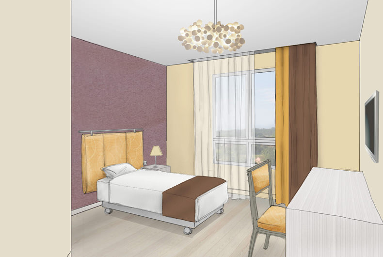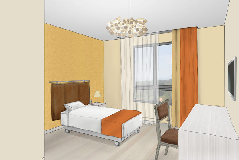 Nous avons travaillé sur la personnalisation en créant 3 ambiances de chambres différentes, alternées à chaque niveau.