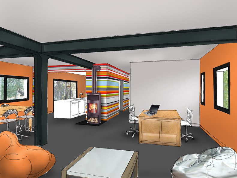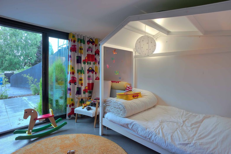 Le rez-de-jardin semi-enterré accueille désormais les chambres, la salle de bain, le dressing et le home cinema.