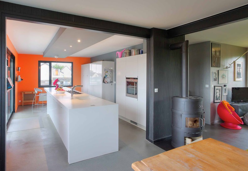 Avec l’arrivée de leur deuxième enfant, un jeune couple cherchait une maison avec un grand jardin. Ayant habité dans un loft, ils souhaitaient en retrouver l’esprit ouvert et lumineux.