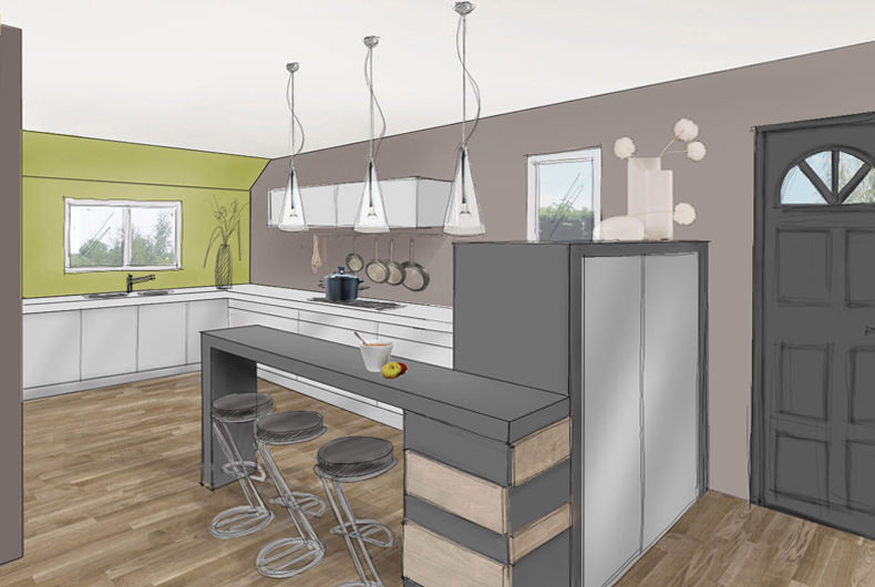 La cuisine a été agrandie et ouverte sur le séjour avec un grand bar convivial.
