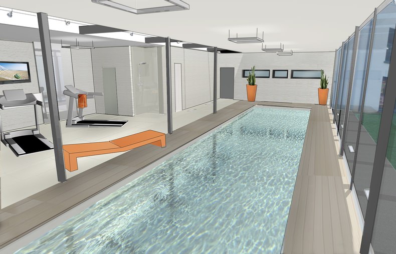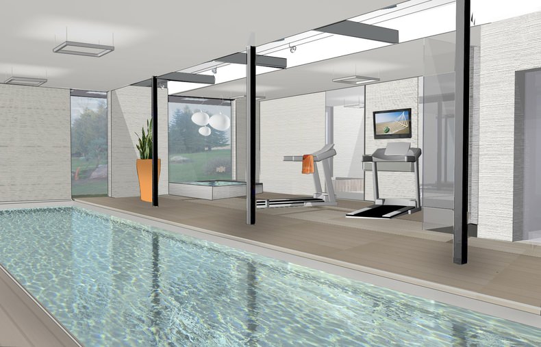 Cette étroite collaboration s’est poursuivie avec son souhait de faire construire une extension pour accueillir une piscine et un espace fitness avec jacuzzi et sauna.