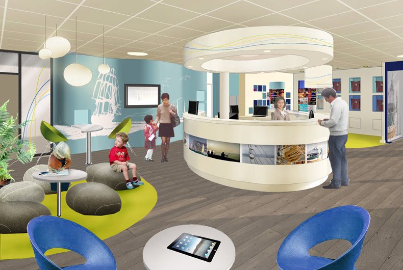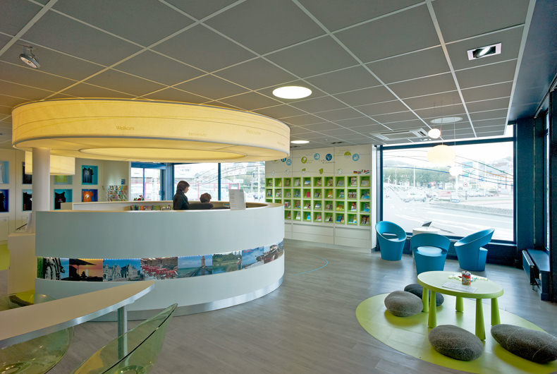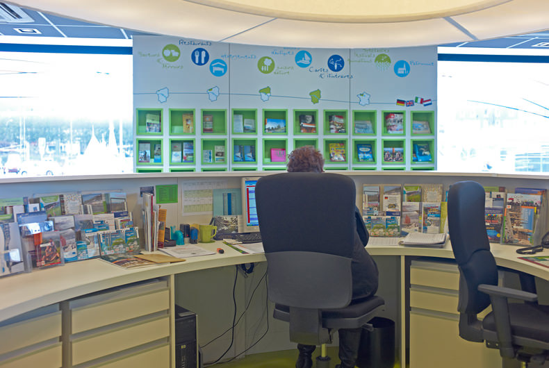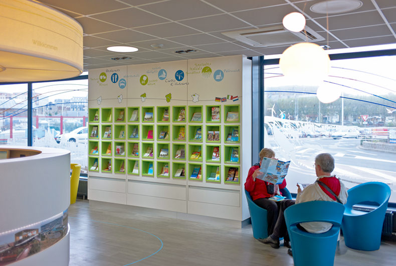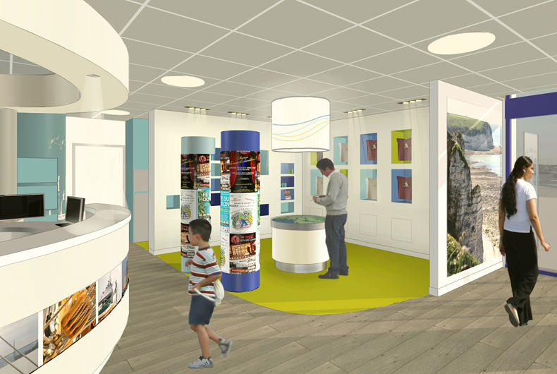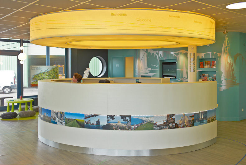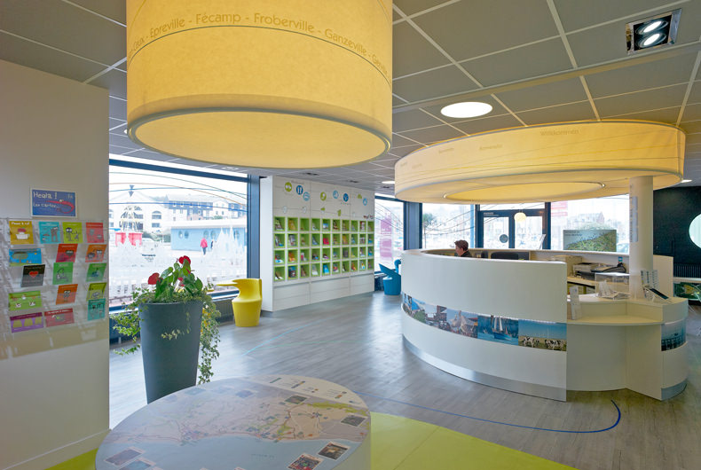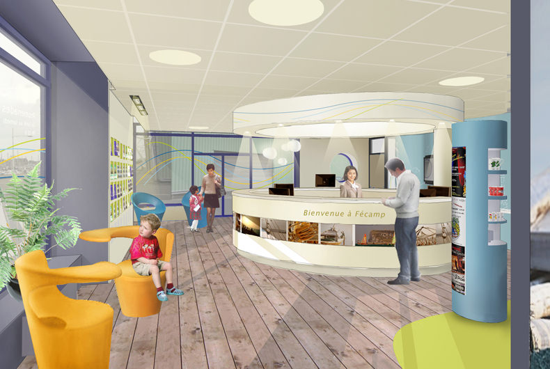 Ayant l’opportunité d’agrandir sa surface d’accueil au public, l’Office de tourisme de Fécamp avait besoin de repenser son organisation et souhaitait donner une image à la fois plus contemporaine et plus accueillante.