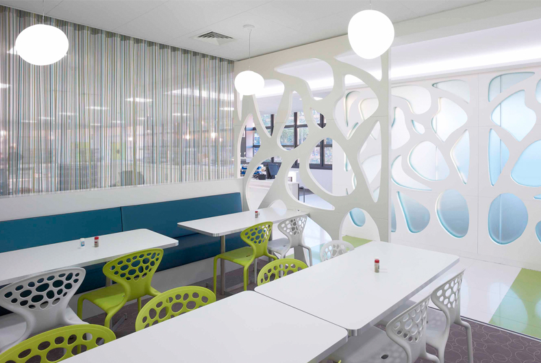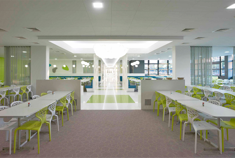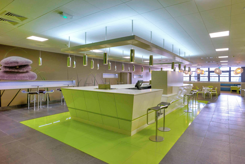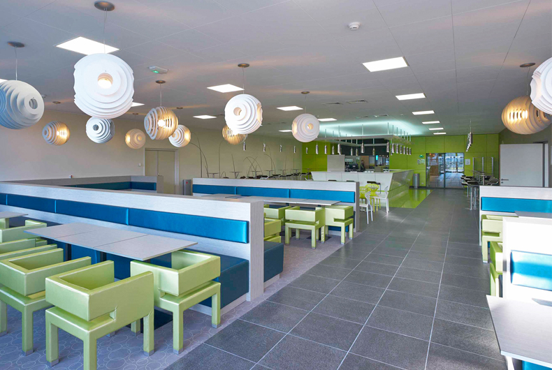 Conception de la décoration du restaurant et de la caféteria dans l'extension du siège social