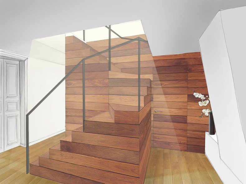 Possédant un bel appartement haussmanien, notre client avait acheté 6 chambres de bonnes situées au-dessus dans l’idée de créer un duplex.